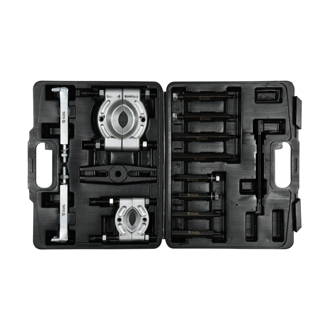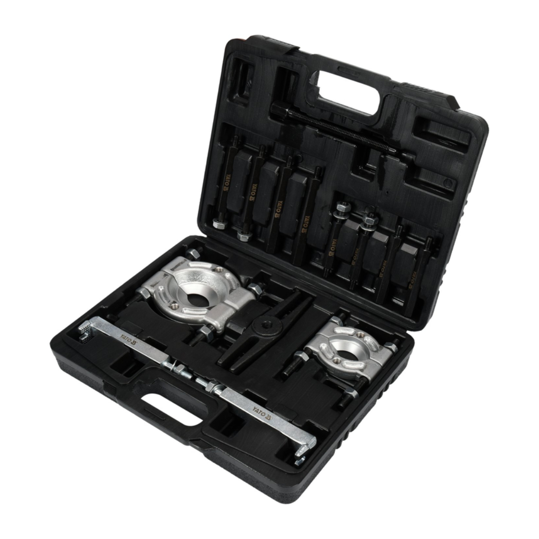 Extractor de dos brazos para desmontar rodamientos, engranajes, discos de freno, etc., con separadores para facilitar la extracción de piezas muy ajustadas y un juego de tornillos centrales. Se suministra completo con separadores para facilitar la extracción de piezas muy ajustadas y un juego de tornillos centrales. Recomendado para servicios mecánicos y de automoción.